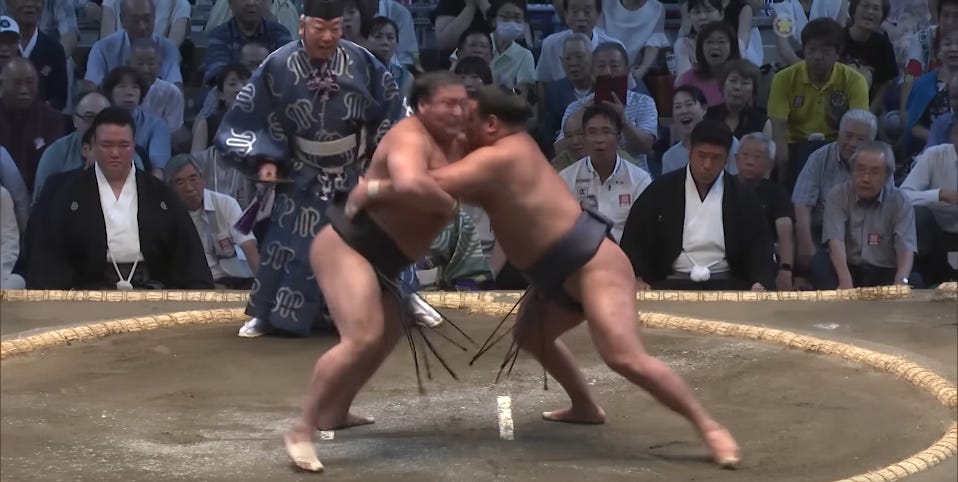 This loss puts Hoshoryu back to 1-1. Onosato then beat Aonishiki to go 2-0. It’s early, but… given what we’ve seen from Onosato, a one loss difference might already be too big a mountain to climb for Hoshoryu. Hopefully I’m wrong, though, and we have lots of drama between these two yet to come.