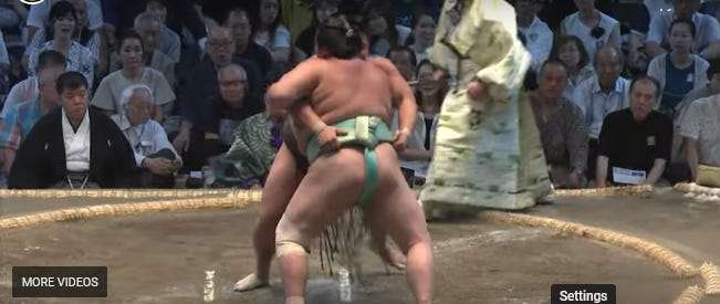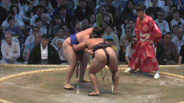 Wakamotoharu defended the first makki-kae, but not the second. When Kotozakura compeleted the move he was able to quickly rush Wakamotoharu out for the win. Here’s the makki-kae to moro-zashi transition in isolation (hopefully NHK don’t ding me for these little gifs — these have to be fair use):