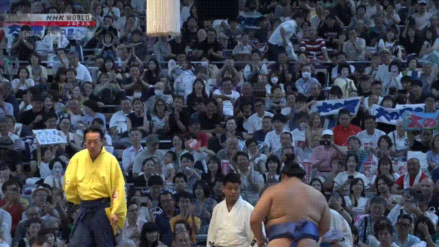 - Gonoyama (3-1) def. Takerufuji (2-2) by hikkake (arm grabbing force out) after mono-ii (judges’ review) reversed gyoji (referee) decision*