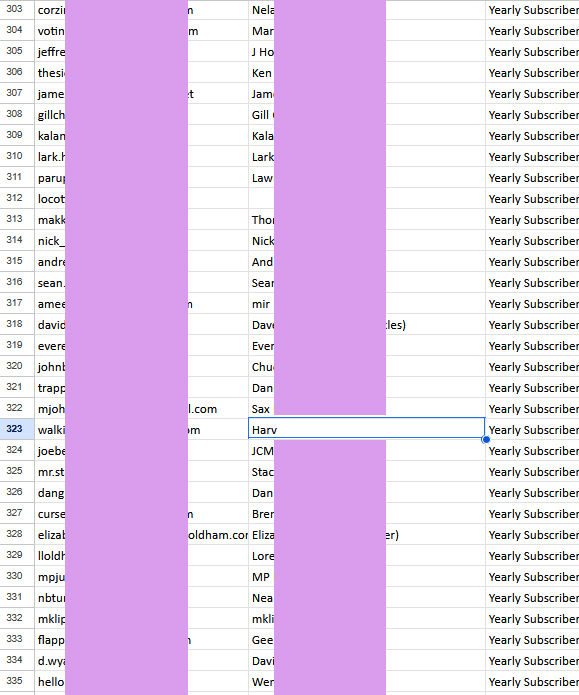 Harv was picked as the winner after I put all subscribers into a spreadsheet (with number of entries corresponding with their level of subscription). I then did a random number generator and that gave me row number 323. That’s one of the rows that had Harv’s details.