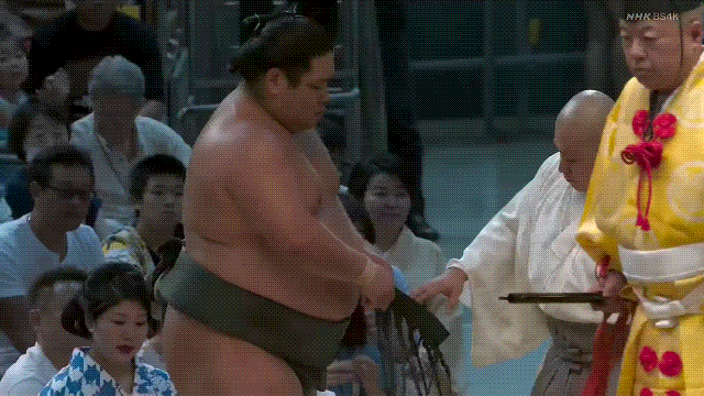 Kayo’s girth makes it hard for opposing grapplers, too. Rōga struggled to get his arms around him and before he could secure a grip, Kayo was able to shoot back and drag him off balance and push him out. Ōnokatsu, who might be one of the best yotsu-zumō specialists in this division right now, was the only person who was able to fully lock him down and force him out.